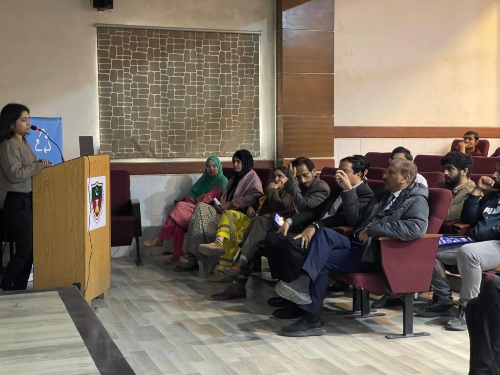 She shared with audience the hazards of plastic waste and their devised software application ,”Plastech”on social media for streamlining the smooth flow of plastic waste from users to the final disposer”. She explained the positive impact, it would have on environment. At conclusion coordination officer thanked the speaker and audience on behalf of: