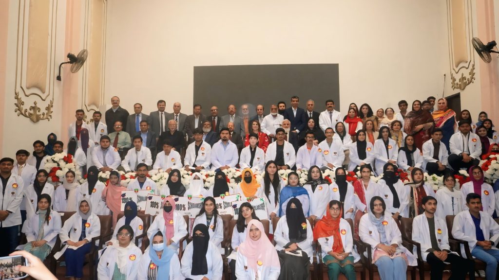 The White Coat Ceremony held at Continental Medical College, Lahore on 27/02/2025 was a beautiful event marking the transition of students into the clinical phase of their education. During the ceremony students don their white coats, symbolizing their commitment to medical ethics, professionalism, and patient care. Prof Andaleeb Khanum took oath from new students. Prof Fauzia Farzana gave the vote of thanks . Principal Prof Ayesha Shaukat in her welcome address to students and their parents gave a brief review of faculty, campus and latest curriculum details along with emphasizing upon the responsibilities and values of medical profession. Ceremony concluded with group photos of new students and faculty followed by refreshments.